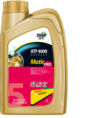 冠軍傳動寶ATF 4000是高性能的酯類全合成自動變速箱油,特別為滿足自動變速箱的防抖耐久性要求而設計,可應用于絕大多數(shù)歐美日韓和國產汽車的5速自動變速箱。